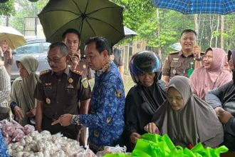 Sambut Iduladha, Kejari-Disdag Balangan Gelar Pasar Murah di Tengah Hujan