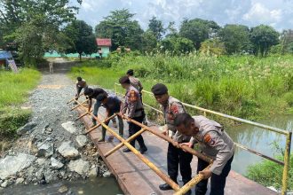 Polres Tanah Bumbu Dukung Pembangunan Jembatan di Tungkaran Pangeran